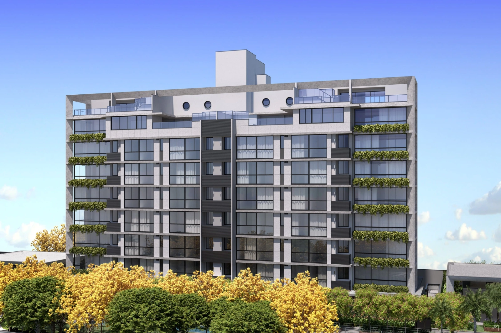 ◉ Rooftops (185 -218 m²) – Coberturas de 3 quartos (1 suíte e 2 semissuítes)